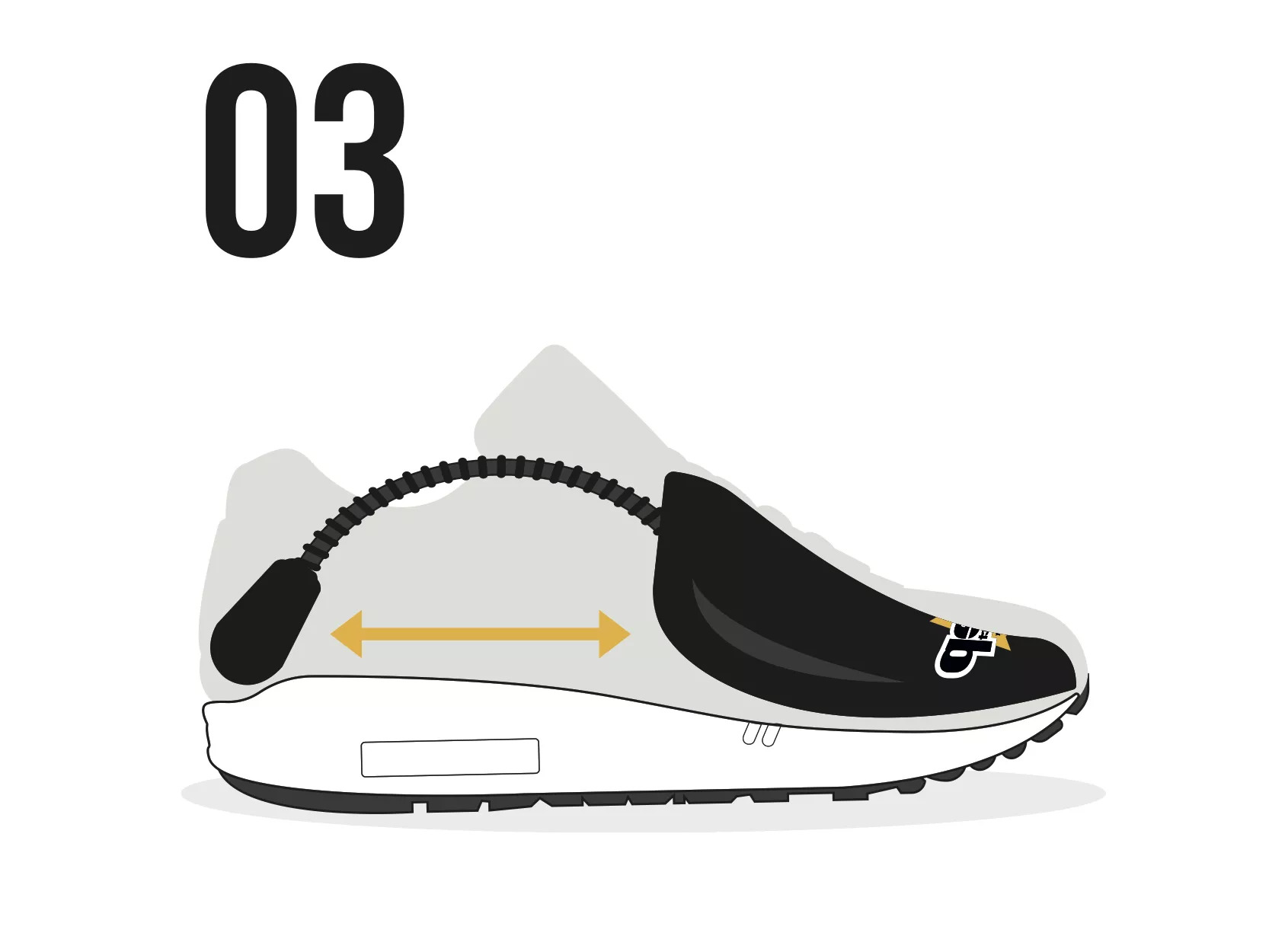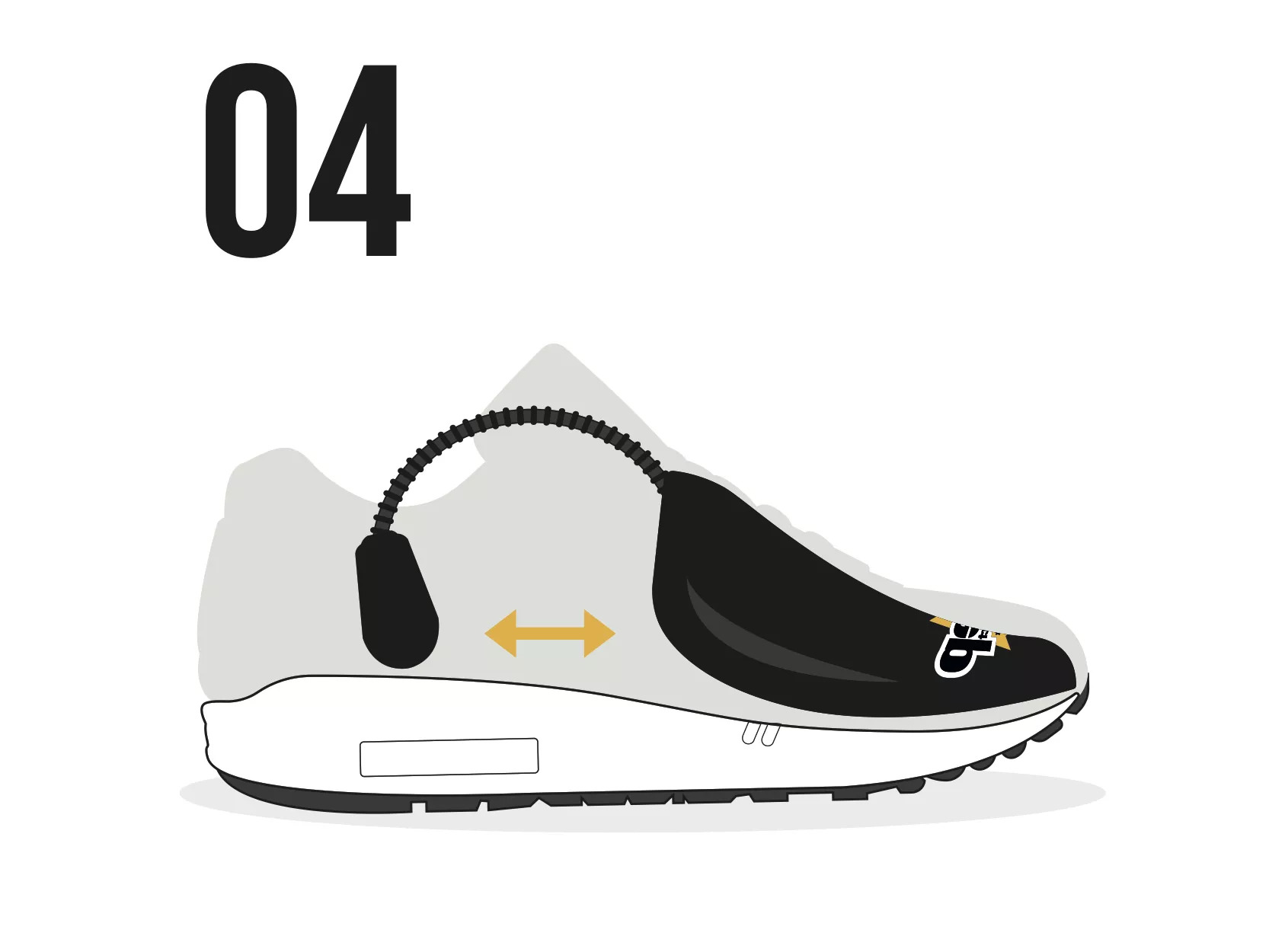 Bend and insert the tip into the base of the heel to shape your sneaker